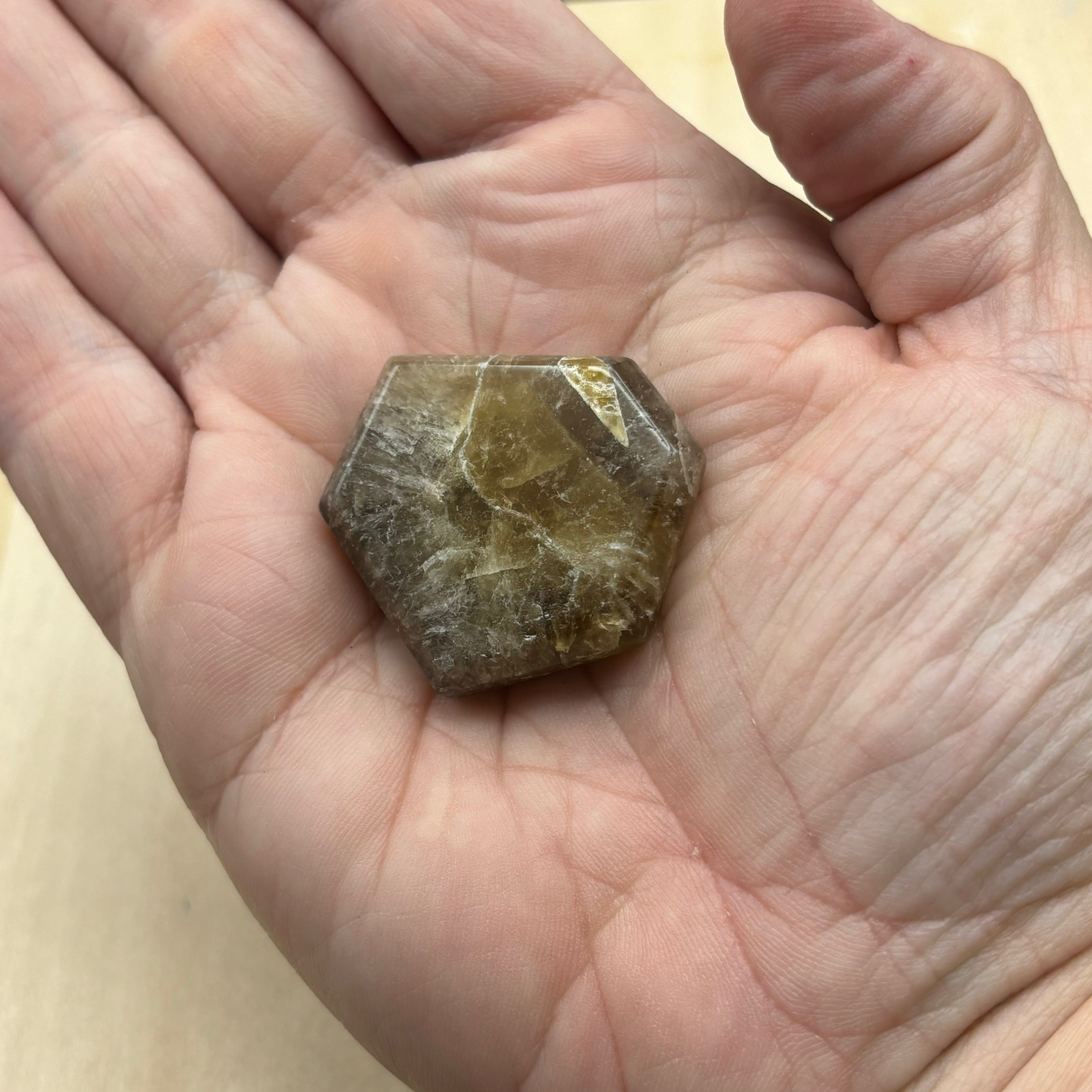 These are rare and new! Some people call them Citrine lucky coins. This is pure and natural whole Citrine from Zambia, where some of the best real Citrine in the world originates. Large whole crystals (in the trigonal crystal structure) are sliced like a loaf of bread. Each “coin” represents one slice of bread from the natural crystal, so the angles and faces are natural formations. They feel very soft, smooth and calming to the touch. They can be used as a lucky charm for abundance or a reminder to be grateful. This is also the perfect harmonizer for treatments and formulas created to gather, magnetize, strengthen, uplift, center, ground or tonify. It has an enormously supportive action on the spleen and stomach. Pull it out when you need support with digestion, memory, focus, (focus is huge in materialization and manifestation practices), nourishment, support, and allowing yourself to receive. Yes, remember to let IN the good qi around you.