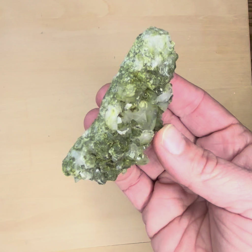 The name epidote means “to increase”. Think of it for staying power through an illness, deep and lasting recovery, augmentation of vitality and healing on every level. Epidote is perfect for weakness caused by complex situations like tangled co-infections, re-emerging illnesses, compromised immunity and hormonal repair. When things feel like they have become hopelessly complex and draining, like multiple body systems are involved, epidote is your go to healing mineral. In this deposit, the quartz is brilliantly amplifying the epidote, clearly powering it up to engage with the world even more. These are pure life!